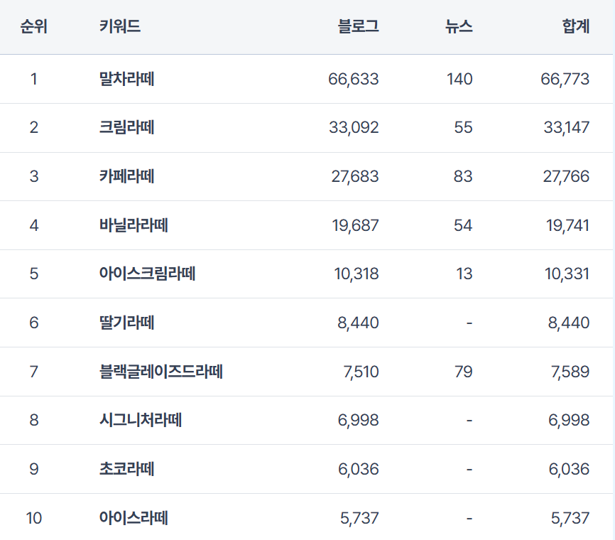 1️⃣ 말차·크림라떼처럼 프리미엄 풍미를 느낄 수 있는 라떼가 압도적!