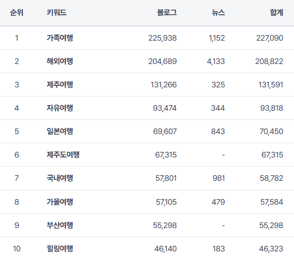 1️⃣ 스테디셀러 여행이 압도적 - 가족·해외·제주 중심의 클래식 수요가 여전히 강세